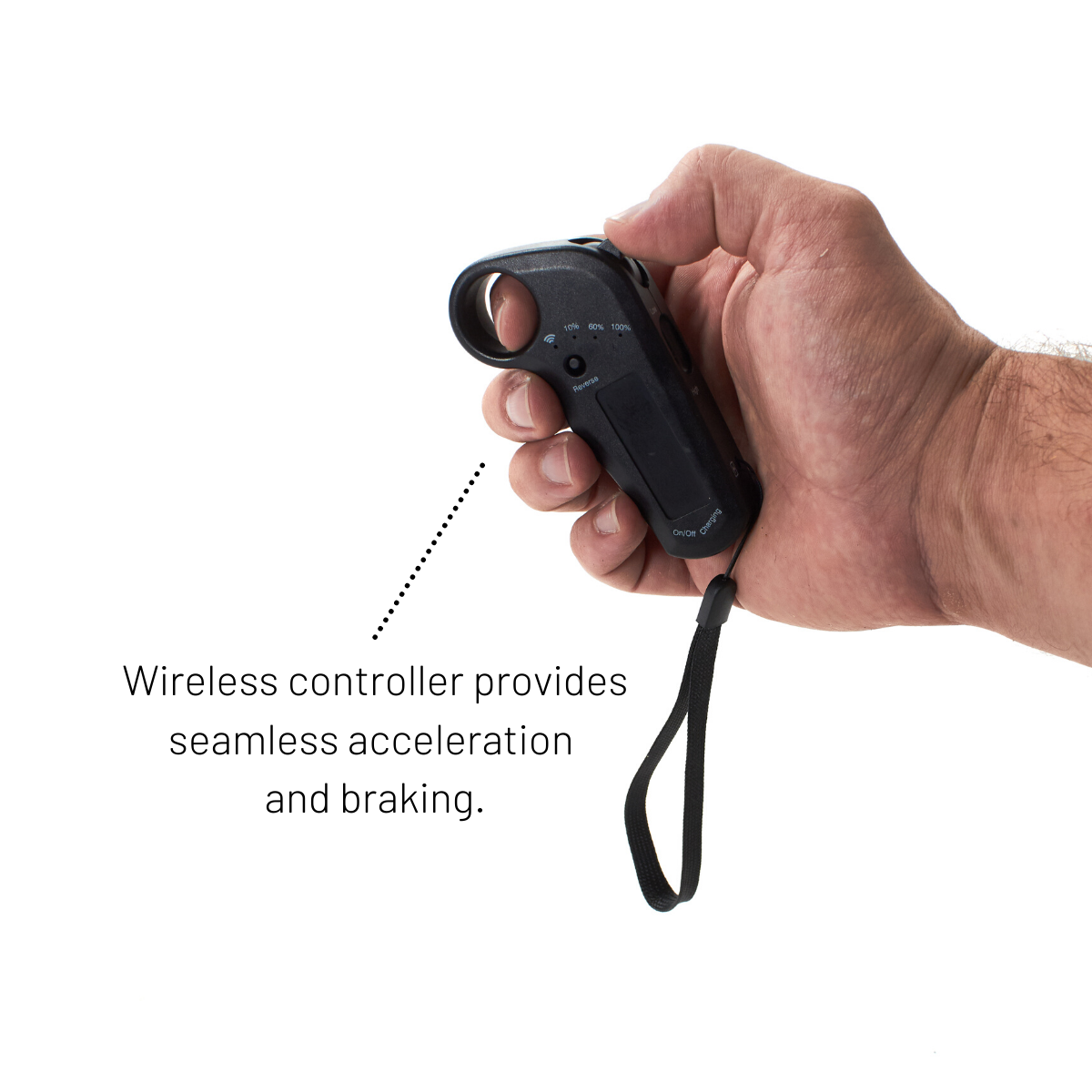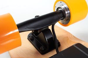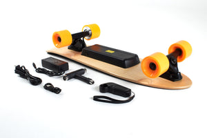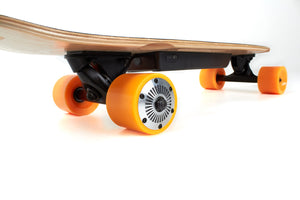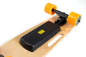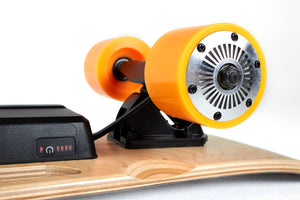 The wireless handheld controller provides smooth yet powerful acceleration and braking. We've spent many hours delicately programming the wireless controller to the board's motor control, to provide seamless power delivery and braking control right at your finger-tips.